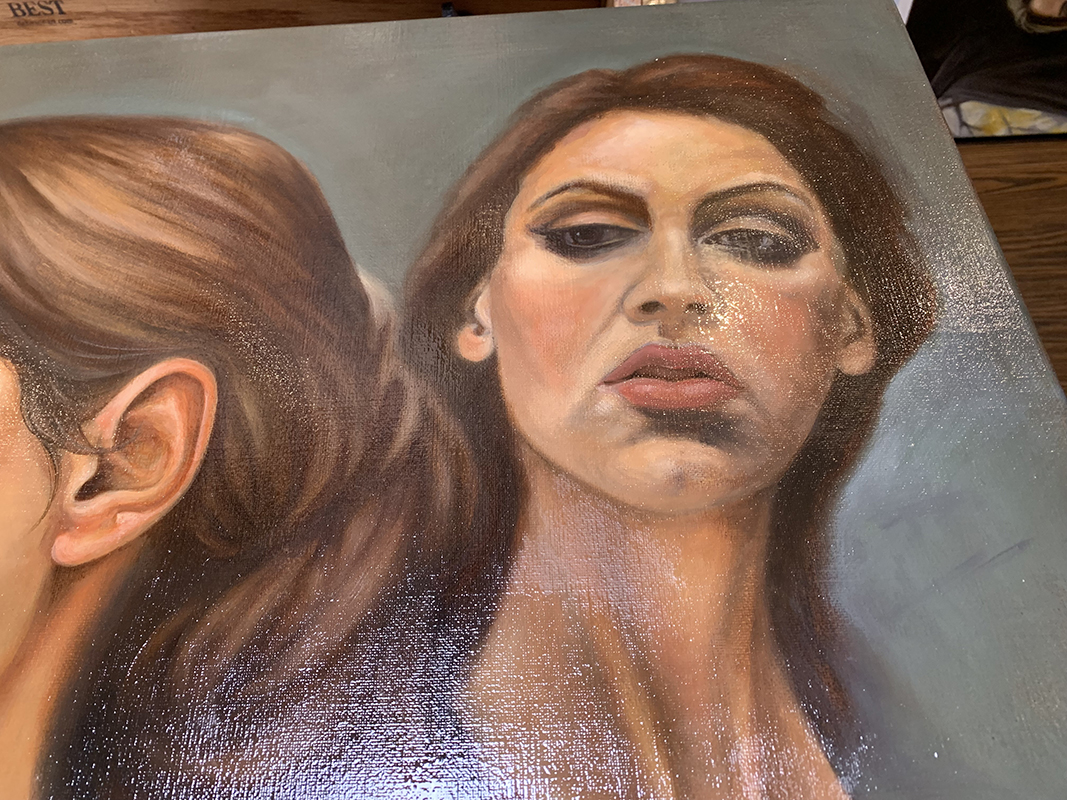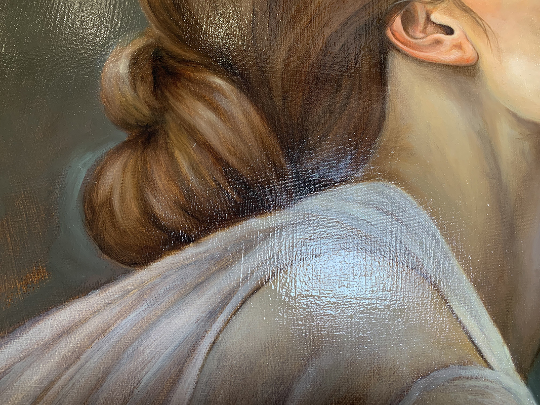 This selection of images may seem a little strange, but they are what I call "just varnished". The last part of the process is the application of varnish, a wet layer that is clear and enhances the very subtle colors of a painting while bringing out the darker tones. In my mind, this is the stage at which the painting is at it's most beautiful, where hidden treasures are revealed.